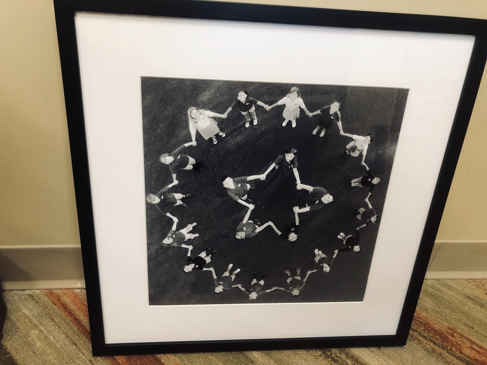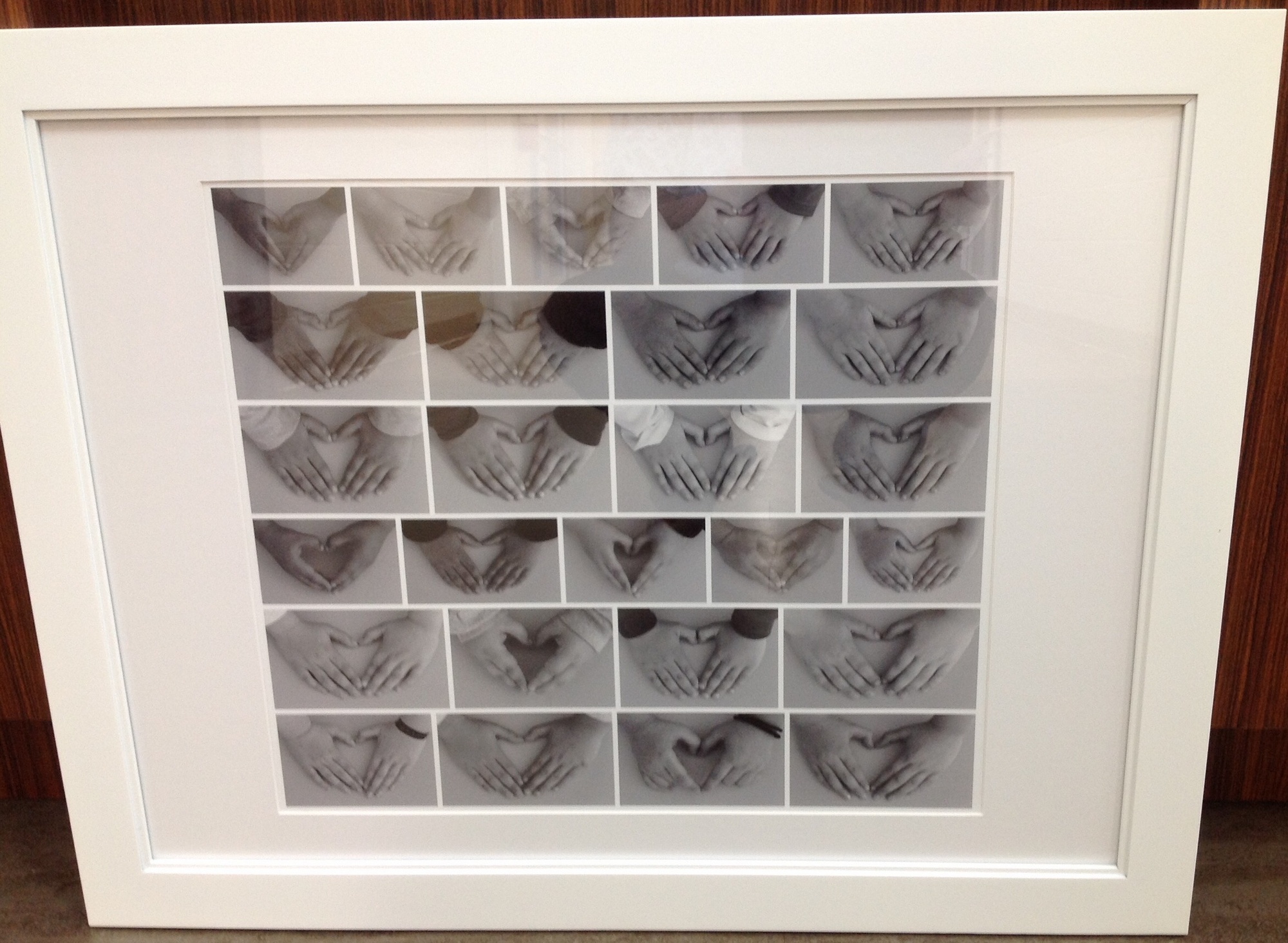 Framed Black & White photo of childrens' hands in a heart shaped.