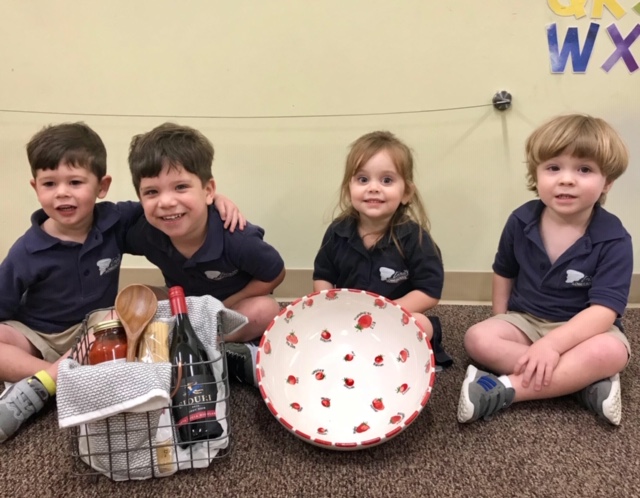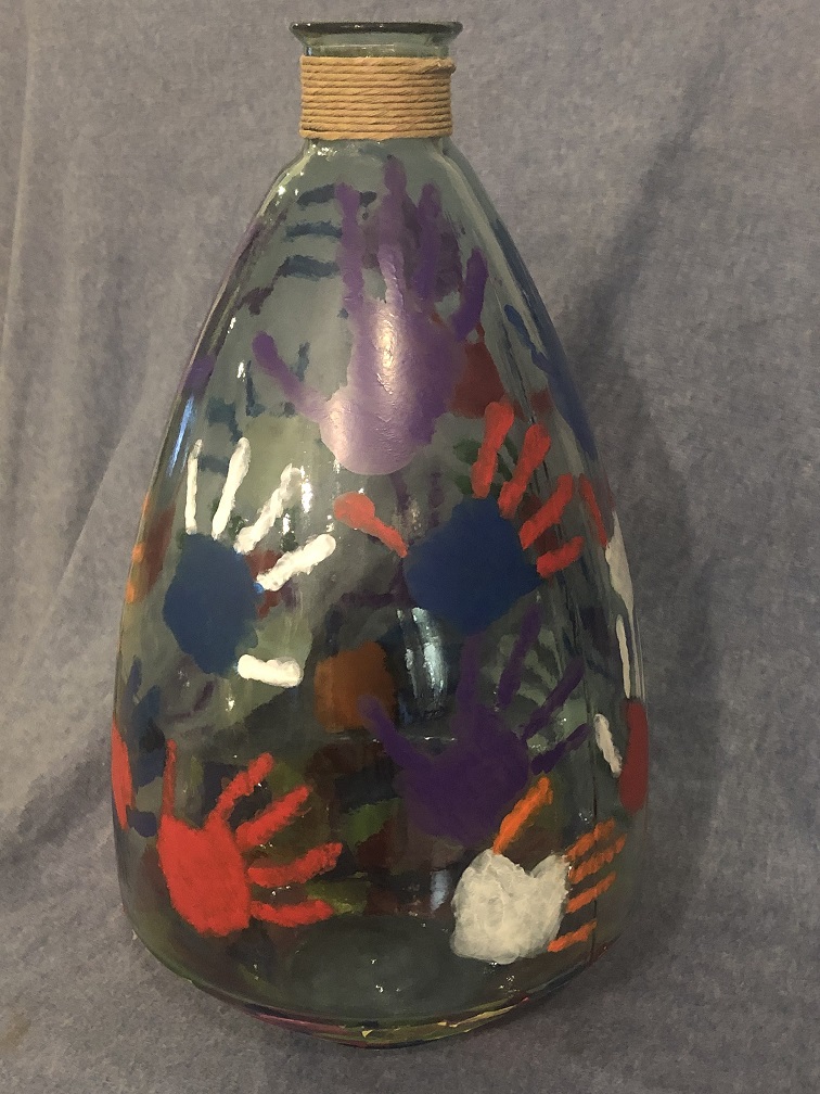 Ceramic Serving Bowl decorated with the fingerprints of the classroom, including a pasta recipe and ingredients! Adorable!